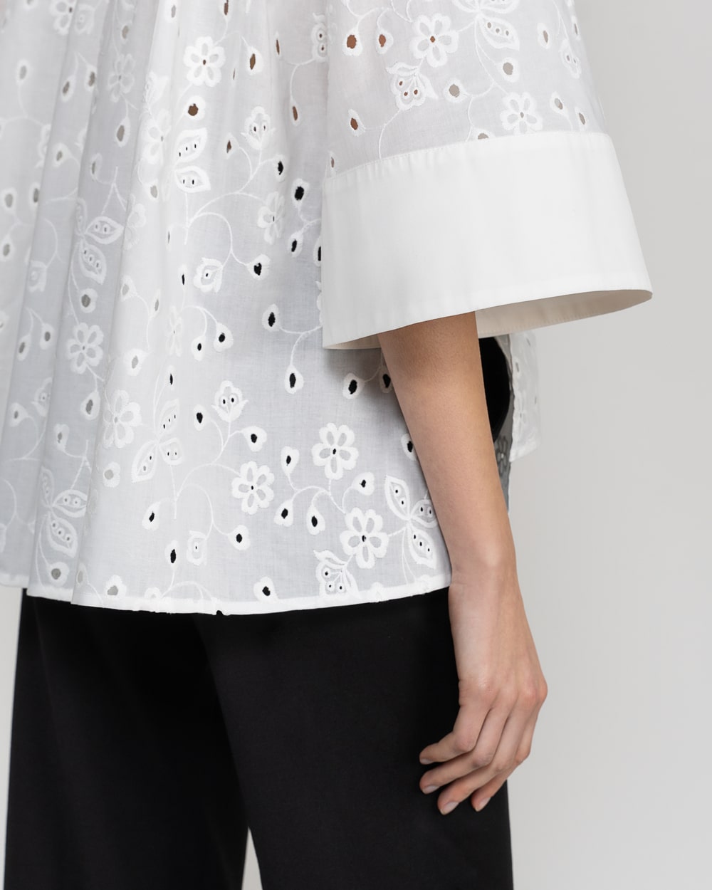 Contrasting elements of embroidered and non embroidered cotton