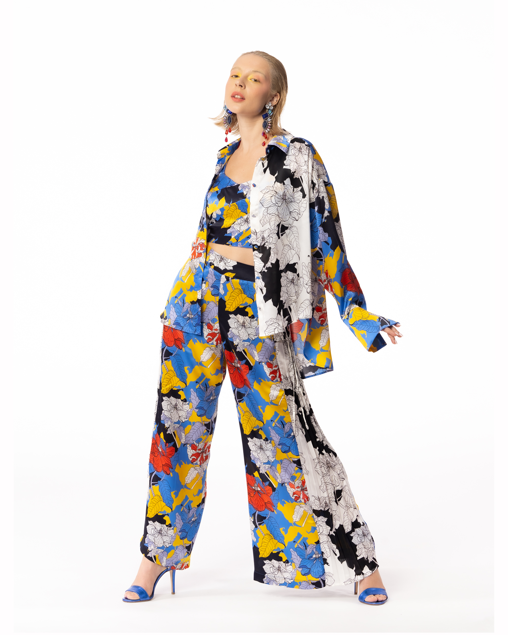 Shirt in embroidered cotton, with layered front and pleated back for more stylish and comfortable fit, as well as eco Corozo button fastening.